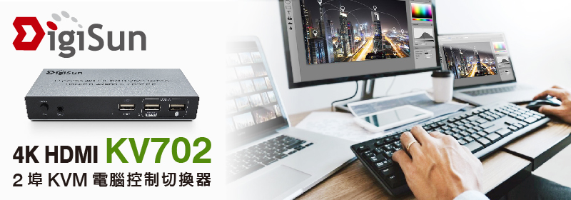 DigiSun KV702 2埠 4K HDMI KVM 電腦控制切換器
