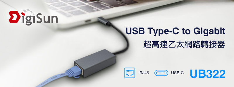 DigiSun UB322 USB Type-C to Gigabit 超高速乙太網路轉接器
